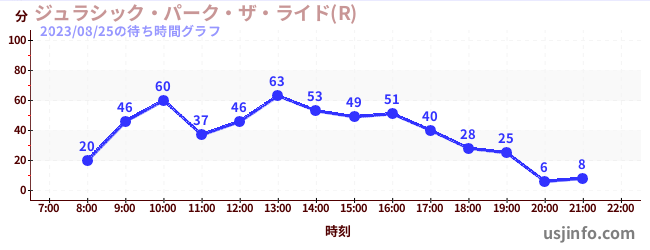 • ジュラシック・パーク・ザ・ライド(R)$B$N(B2023年08月25日の待ち時間