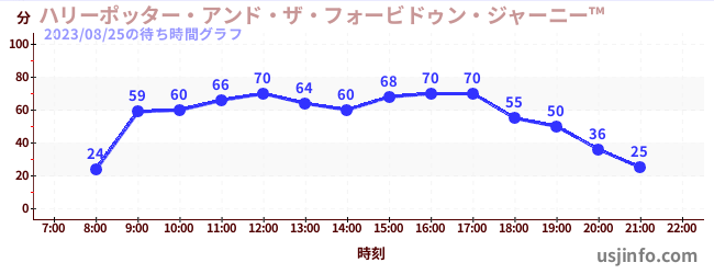 • ハリーポッター・アンド・ザ・フォービドゥン・ジャーニー™$B$N(B2023年08月25日の待ち時間