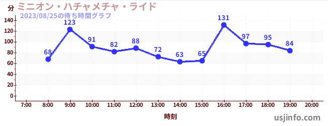 • ミニオン・ハチャメチャ・ライド$B$N(B2023年08月25日の待ち時間