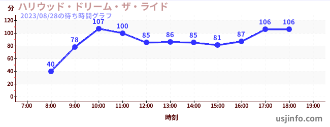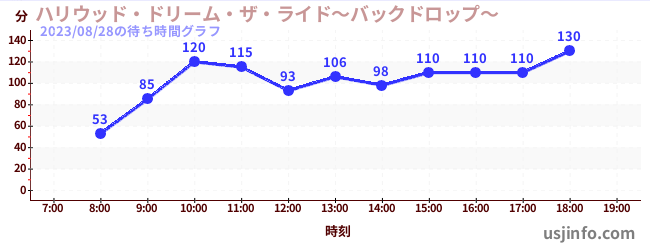 • ハリウッド・ドリーム・ザ・ライド〜バックドロップ〜$B$N(B2023年08月28日の待ち時間