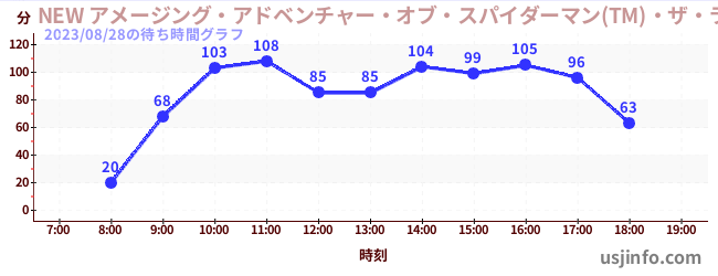 • NEW アメージング・アドベンチャー・オブ・スパイダーマン(TM)・ザ・ライド 4K3D$B$N(B2023年08月28日の待ち時間