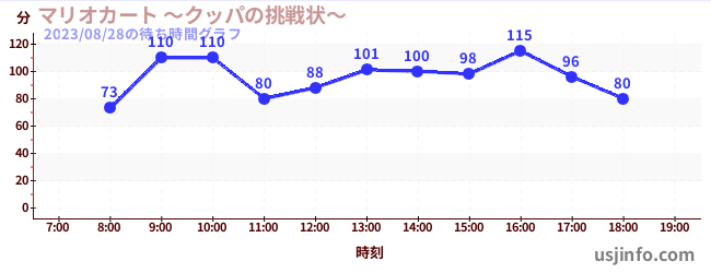 • マリオカート ~クッパの挑戦状~$B$N(B2023年08月28日の待ち時間