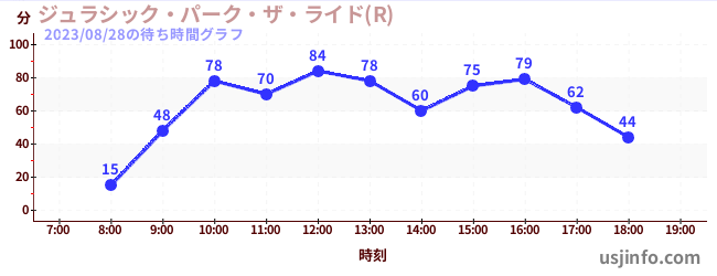 • ジュラシック・パーク・ザ・ライド(R)$B$N(B2023年08月28日の待ち時間