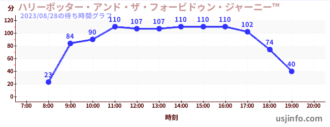 • ハリーポッター・アンド・ザ・フォービドゥン・ジャーニー™$B$N(B2023年08月28日の待ち時間
