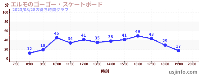• エルモのゴーゴー・スケートボード$B$N(B2023年08月28日の待ち時間