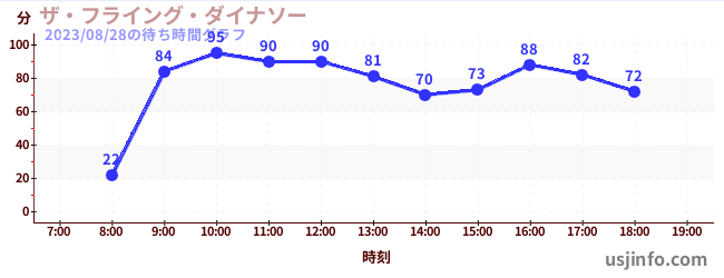 • ザ・フライング・ダイナソー$B$N(B2023年08月28日の待ち時間