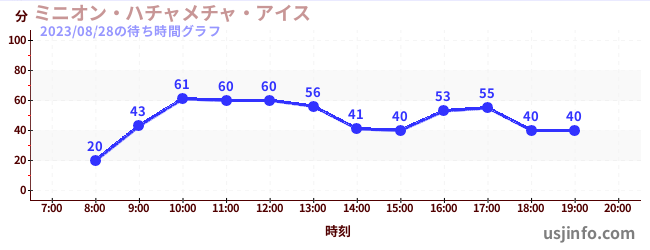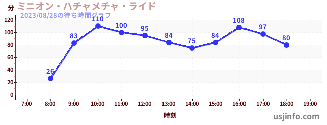 • ミニオン・ハチャメチャ・ライド$B$N(B2023年08月28日の待ち時間