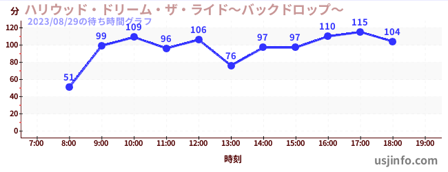 • ハリウッド・ドリーム・ザ・ライド〜バックドロップ〜$B$N(B2023年08月29日の待ち時間