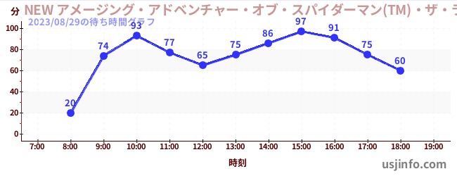 • NEW アメージング・アドベンチャー・オブ・スパイダーマン(TM)・ザ・ライド 4K3D$B$N(B2023年08月29日の待ち時間