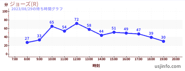 • ジョーズ(R)$B$N(B2023年08月29日の待ち時間