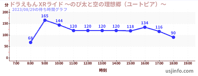 • ドラえもん XRライド ~のび太と空の理想郷(ユートピア)~$B$N(B2023年08月29日の待ち時間