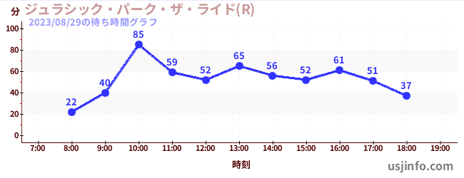 • ジュラシック・パーク・ザ・ライド(R)$B$N(B2023年08月29日の待ち時間