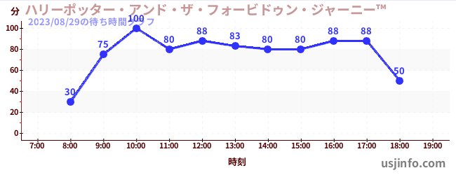 • ハリーポッター・アンド・ザ・フォービドゥン・ジャーニー™$B$N(B2023年08月29日の待ち時間