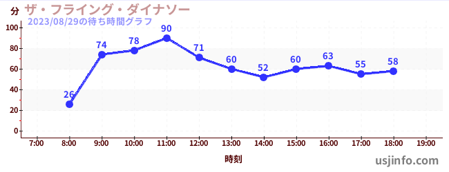 • ザ・フライング・ダイナソー$B$N(B2023年08月29日の待ち時間