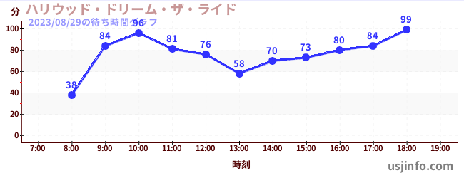 • ハリウッド・ドリーム・ザ・ライド$B$N(B2023年08月29日の待ち時間