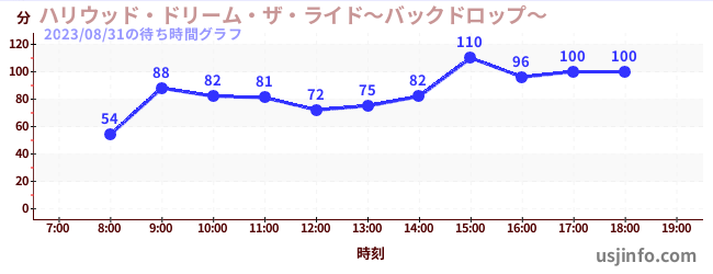 • ハリウッド・ドリーム・ザ・ライド〜バックドロップ〜$B$N(B2023年08月31日の待ち時間