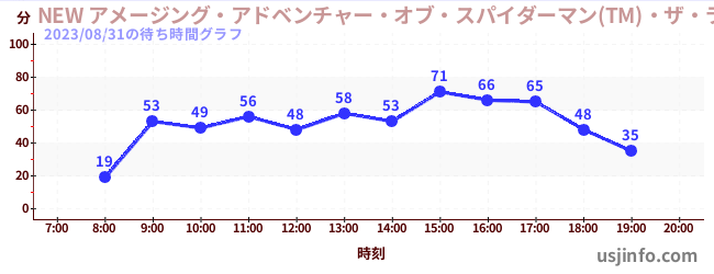 • NEW アメージング・アドベンチャー・オブ・スパイダーマン(TM)・ザ・ライド 4K3D$B$N(B2023年08月31日の待ち時間