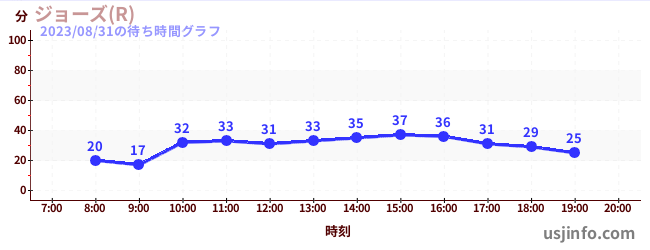• ジョーズ(R)$B$N(B2023年08月31日の待ち時間