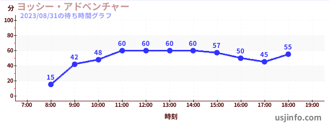 • ミニオン・ハチャメチャ・ライド$B$N(B2023年08月31日の待ち時間