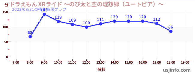 • ドラえもん XRライド ~のび太と空の理想郷(ユートピア)~$B$N(B2023年08月31日の待ち時間
