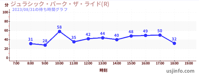 • ジュラシック・パーク・ザ・ライド(R)$B$N(B2023年08月31日の待ち時間