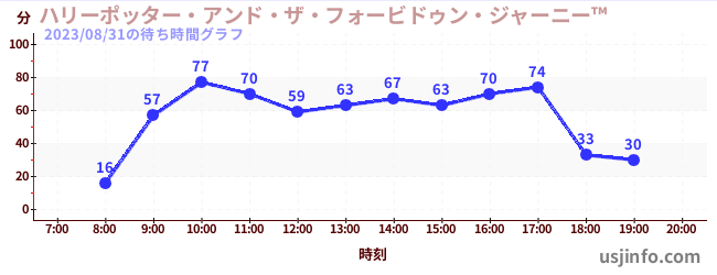 • ハリーポッター・アンド・ザ・フォービドゥン・ジャーニー™$B$N(B2023年08月31日の待ち時間