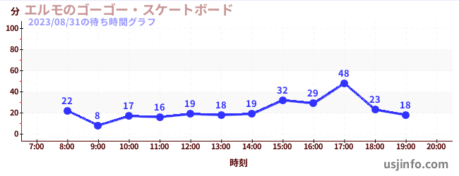 • エルモのゴーゴー・スケートボード$B$N(B2023年08月31日の待ち時間