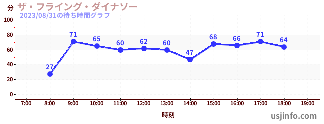 • ザ・フライング・ダイナソー$B$N(B2023年08月31日の待ち時間