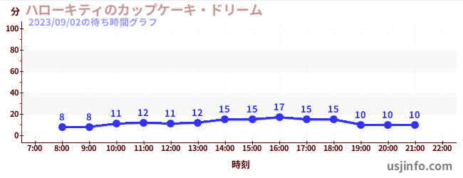 • ハローキティのカップケーキ・ドリーム$B$N(B2023年09月02日の待ち時間