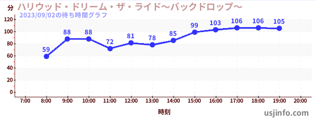 • ハリウッド・ドリーム・ザ・ライド〜バックドロップ〜$B$N(B2023年09月02日の待ち時間