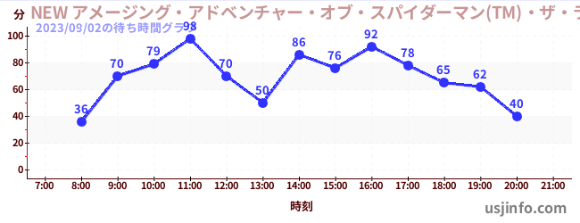 • NEW アメージング・アドベンチャー・オブ・スパイダーマン(TM)・ザ・ライド 4K3D$B$N(B2023年09月02日の待ち時間