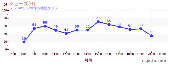 • ジョーズ(R)$B$N(B2023年09月02日の待ち時間