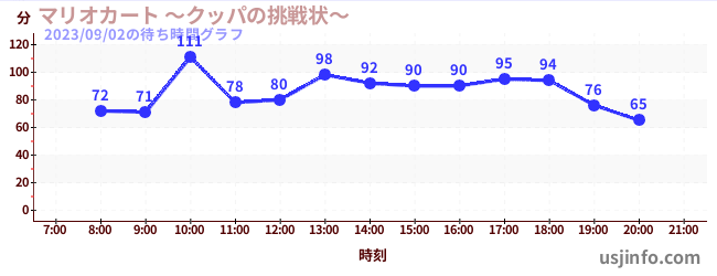 • マリオカート ~クッパの挑戦状~$B$N(B2023年09月02日の待ち時間