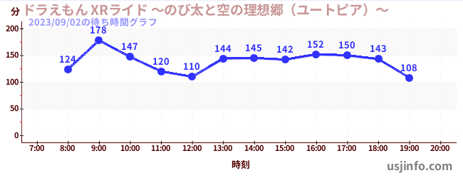• ドラえもん XRライド ~のび太と空の理想郷(ユートピア)~$B$N(B2023年09月02日の待ち時間