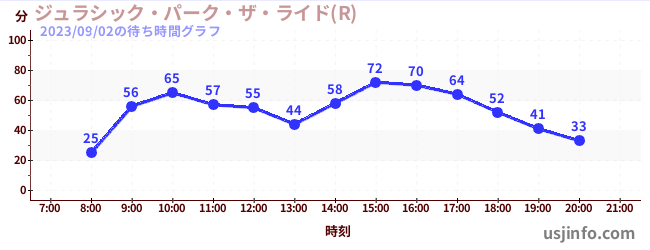 • ジュラシック・パーク・ザ・ライド(R)$B$N(B2023年09月02日の待ち時間