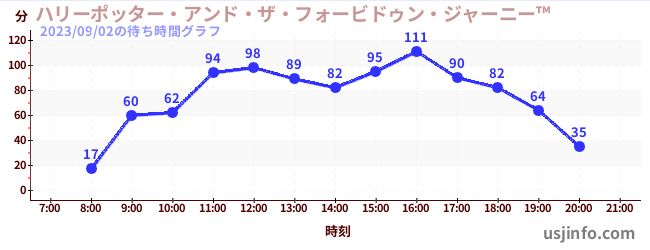 • ハリーポッター・アンド・ザ・フォービドゥン・ジャーニー™$B$N(B2023年09月02日の待ち時間