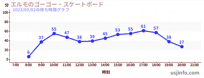 • エルモのゴーゴー・スケートボード$B$N(B2023年09月02日の待ち時間