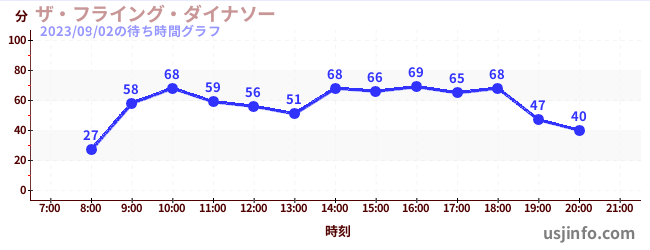 • ザ・フライング・ダイナソー$B$N(B2023年09月02日の待ち時間