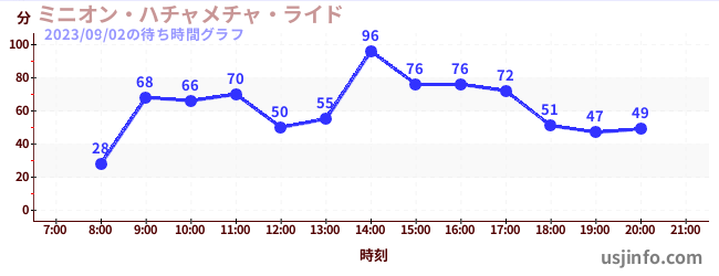 • ミニオン・ハチャメチャ・ライド$B$N(B2023年09月02日の待ち時間