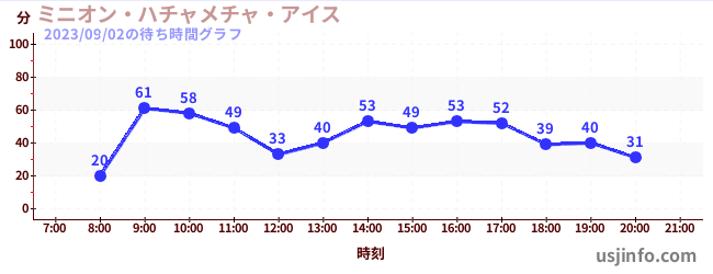 • ミニオン・ハチャメチャ・アイス$B$N(B2023年09月02日の待ち時間