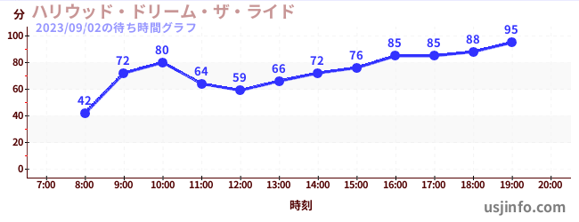 • ハリウッド・ドリーム・ザ・ライド$B$N(B2023年09月02日の待ち時間
