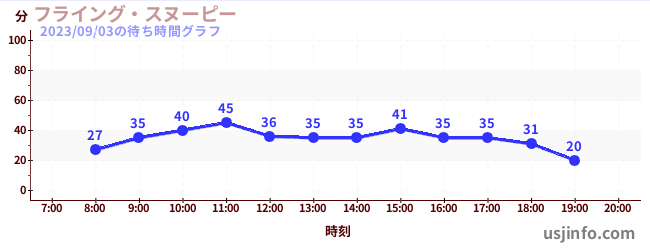 • フライング・スヌーピー$B$N(B2023年09月03日の待ち時間