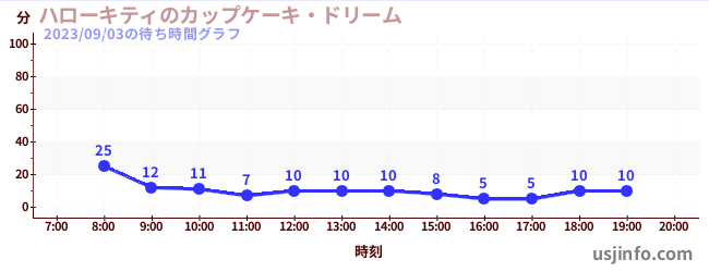 • ハローキティのカップケーキ・ドリーム$B$N(B2023年09月03日の待ち時間