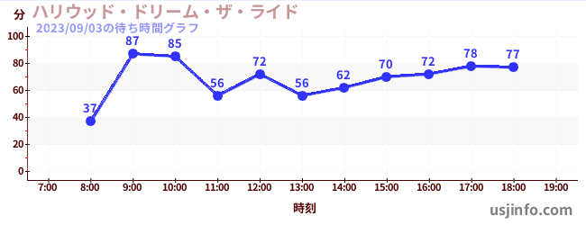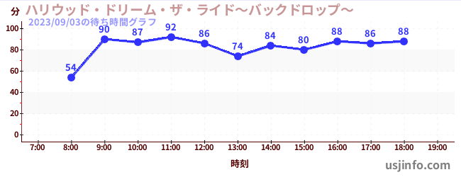 • ハリウッド・ドリーム・ザ・ライド〜バックドロップ〜$B$N(B2023年09月03日の待ち時間