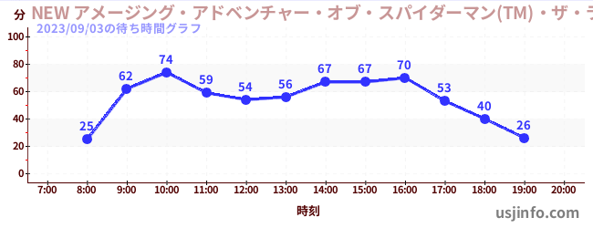 • NEW アメージング・アドベンチャー・オブ・スパイダーマン(TM)・ザ・ライド 4K3D$B$N(B2023年09月03日の待ち時間