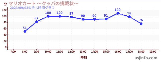 • マリオカート ~クッパの挑戦状~$B$N(B2023年09月03日の待ち時間