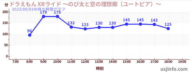 • ドラえもん XRライド ~のび太と空の理想郷(ユートピア)~$B$N(B2023年09月03日の待ち時間