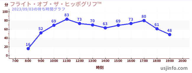 • フライト・オブ・ザ・ヒッポグリフ™$B$N(B2023年09月03日の待ち時間