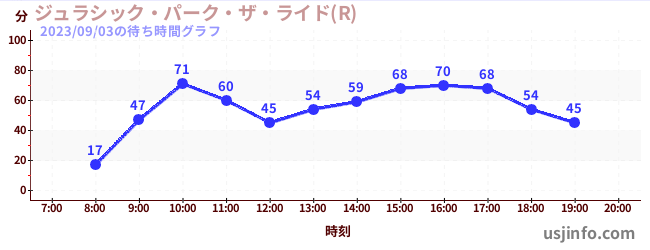 • ジュラシック・パーク・ザ・ライド(R)$B$N(B2023年09月03日の待ち時間
