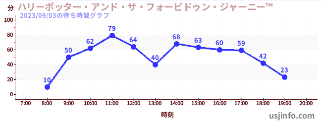 • ハリーポッター・アンド・ザ・フォービドゥン・ジャーニー™$B$N(B2023年09月03日の待ち時間